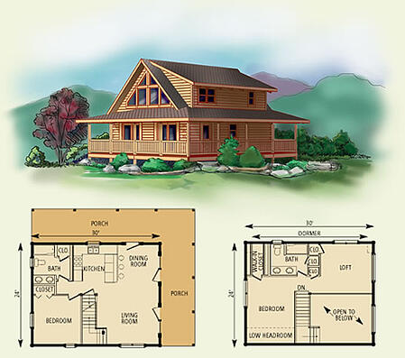 Log cabin floor plans have intimate interiors with the living space on the first floor, including the master bedroom in most cases.
